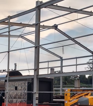 Coberturas e mezaninos metálicos sob medida, com agilidade, segurança e precisão estrutural.
